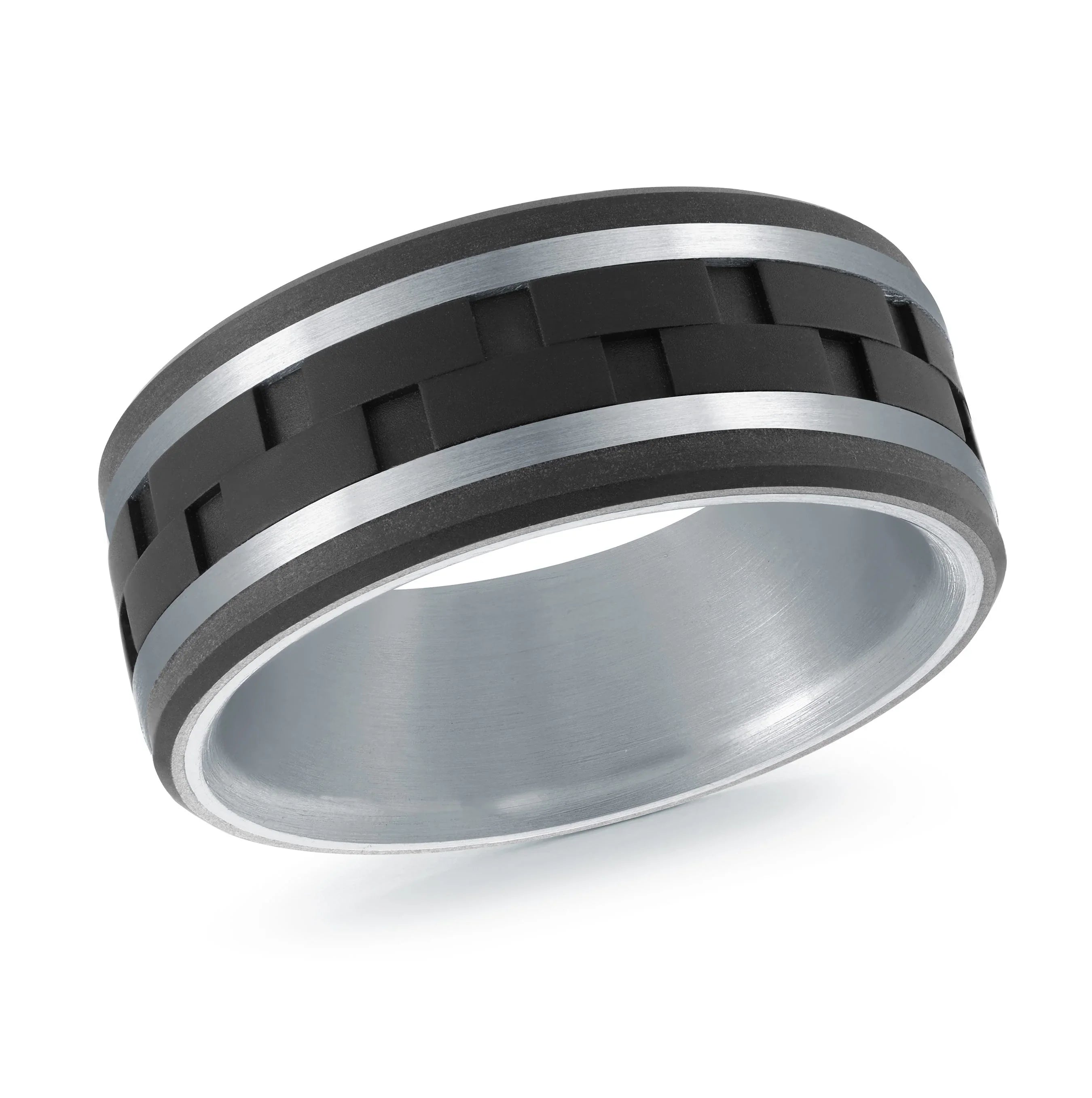 Titanium with Carbon Fiber and 14K White Gold Ring from the Titanium Collection by Malo - MRDTI-021-9BW