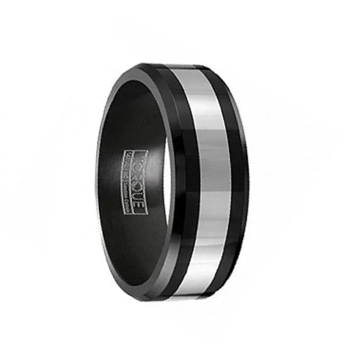 - edges. This ring comes in a comfort fit style and is available in an 8 mm width, perfect for daily wear. You may also find similar ring styles under our tungsten wedding bands collection.This