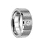 Brushed and Grooved Tungsten Wedding Ring with White Diamond and Beveled Edges - 8mm