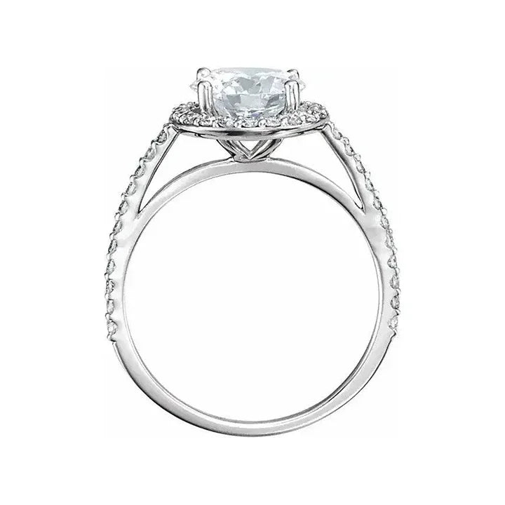 VIVIENNE Pavé Halo Four Prong Solitaire Lab Diamond Engagement Ring in 14K White Gold
