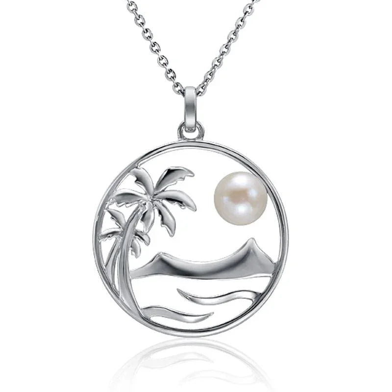 White Pearl Palm Tree Pendant