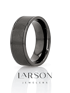 Polished dual offset grooves add the perfect amount of detail to this audacious men’s wedding ring. Made from black titanium, this ring features a sleek brushed finish and rounded edges. Its brushed finish makes this ring a great choice for men who prefer a subtly. The interior band is also rounded for a comfort fit style.