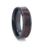 - Titanium wedding band with a redwood inlay and a clear-polished finish.