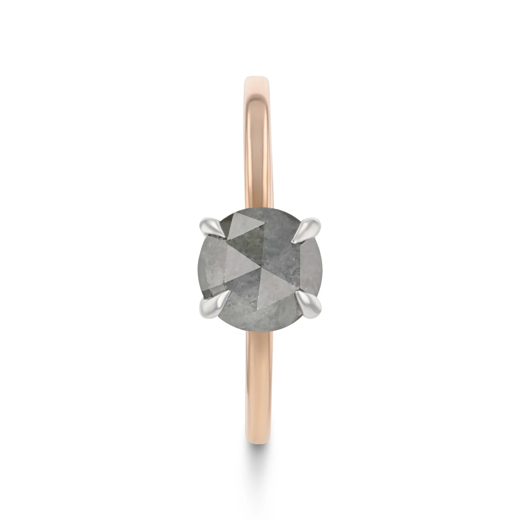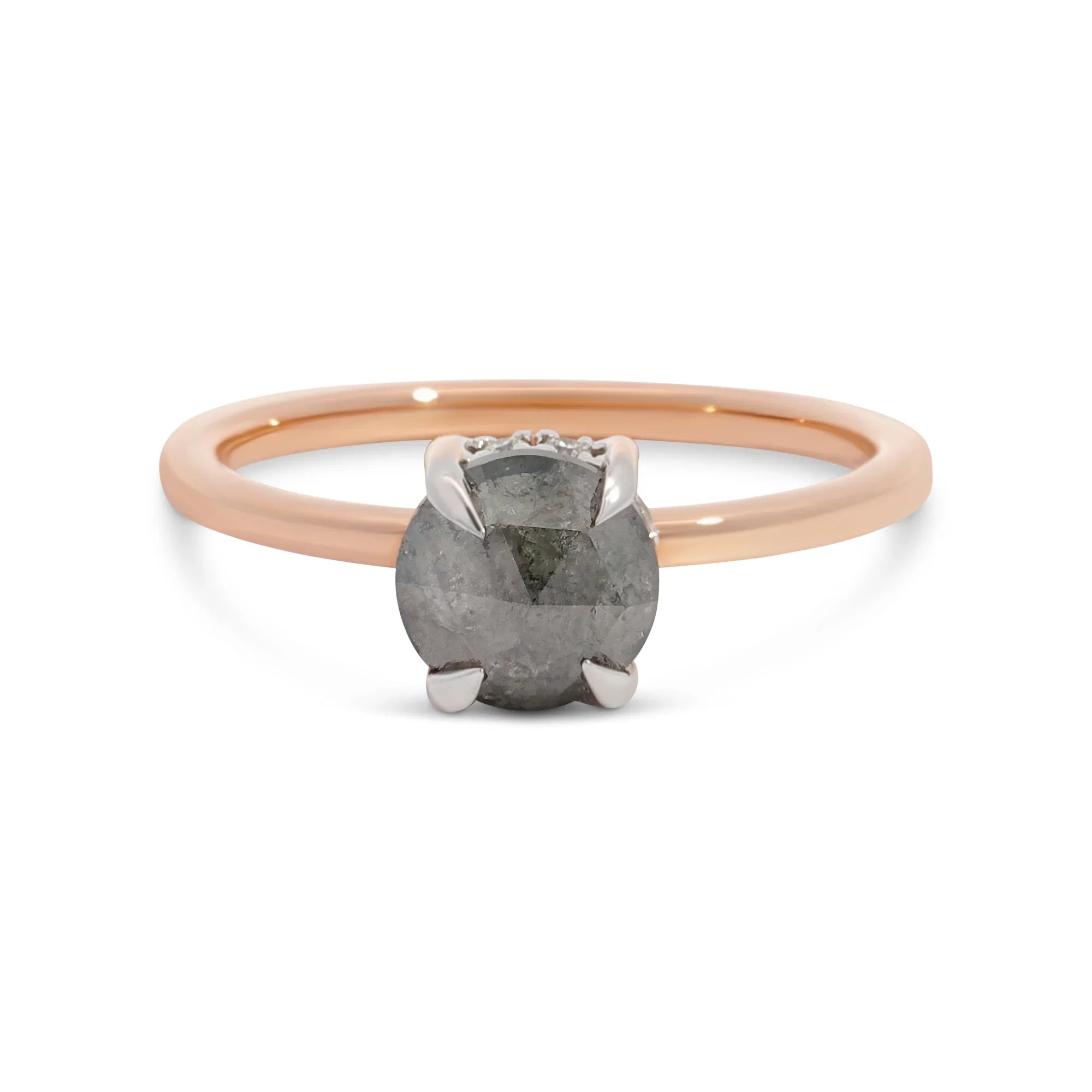 ZELDA 1.11 ct 14K Rose Gold Round Natural Salt & Pepper Diamond Solitaire Engagement Ring