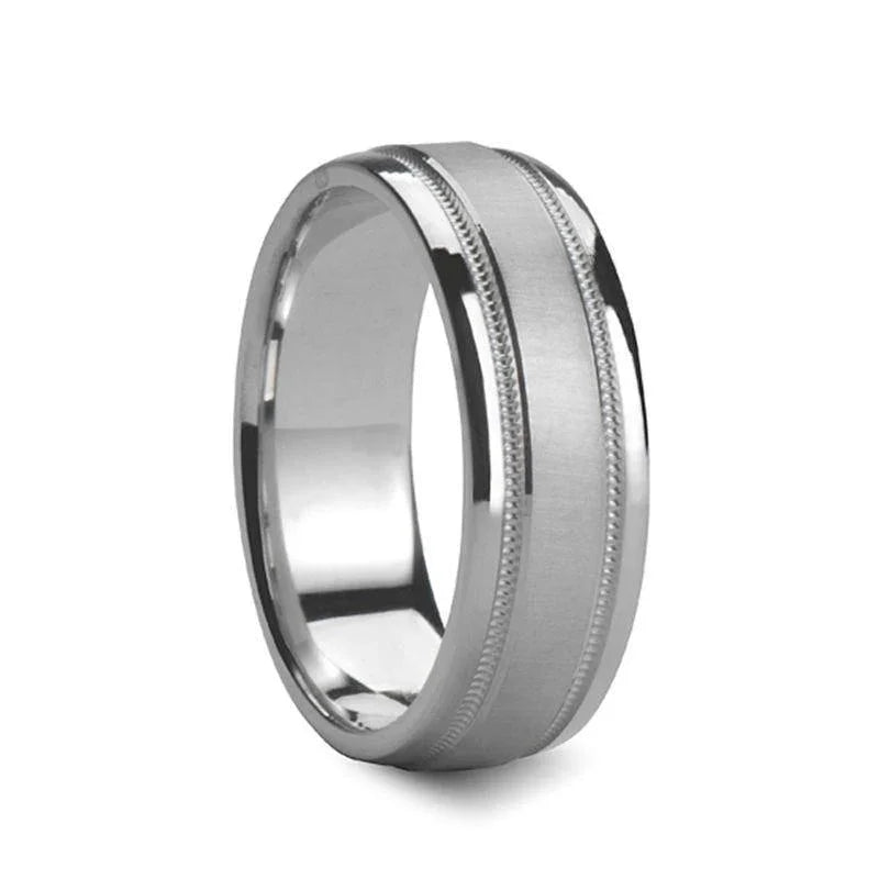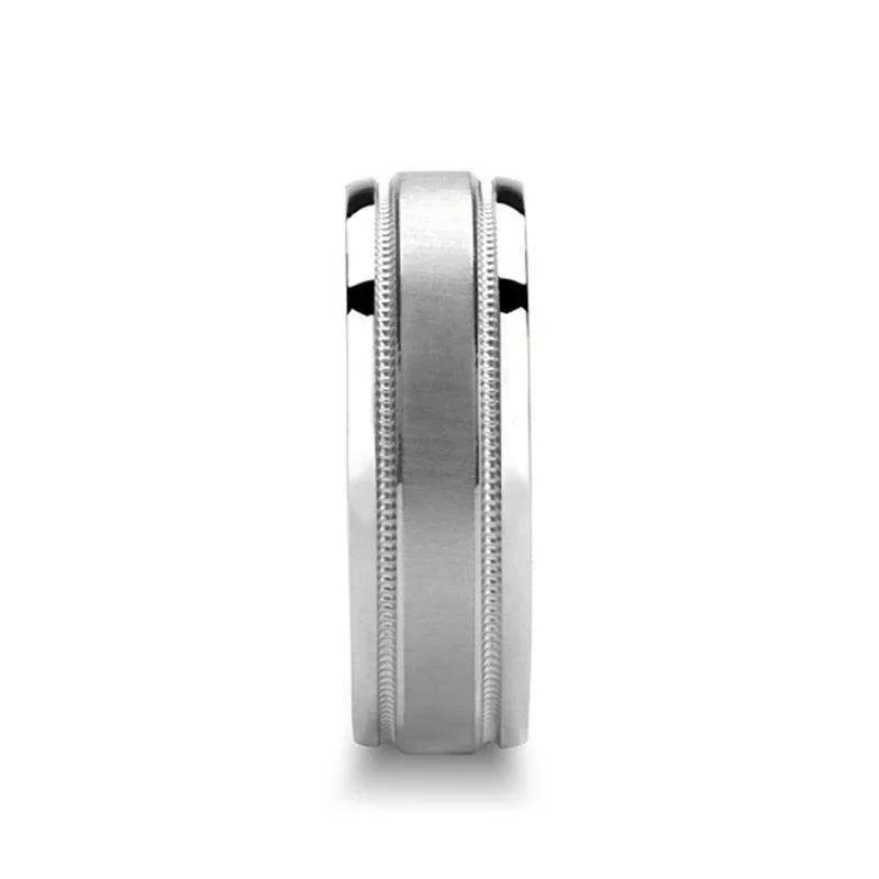 Novell Satin Finished Center Silver Ring with Dual Milgrains - 6mm - 8mm