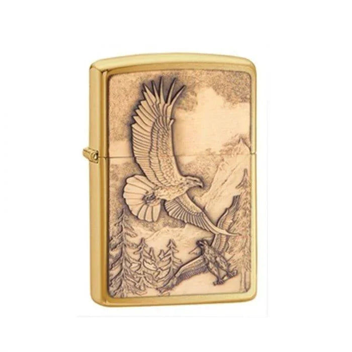This is a beautiful lighter with a flying eagle design. This is made in the traditional Zippo style. This lighter measures 2 1/4" x 1 7/16". This lighter is fully engraveable with many fonts and symbols to choose from. Zippo lighters are world famous and known for their quality and being fully made in the United States.
