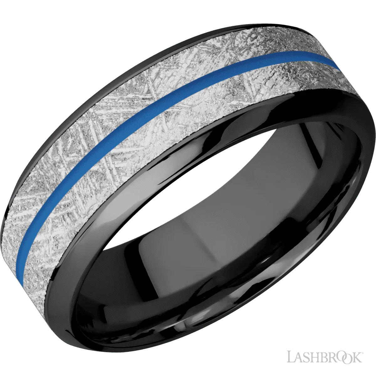 Zirconium with Polish Finish Meteorite and Sea Blue Inlays- 8MM
