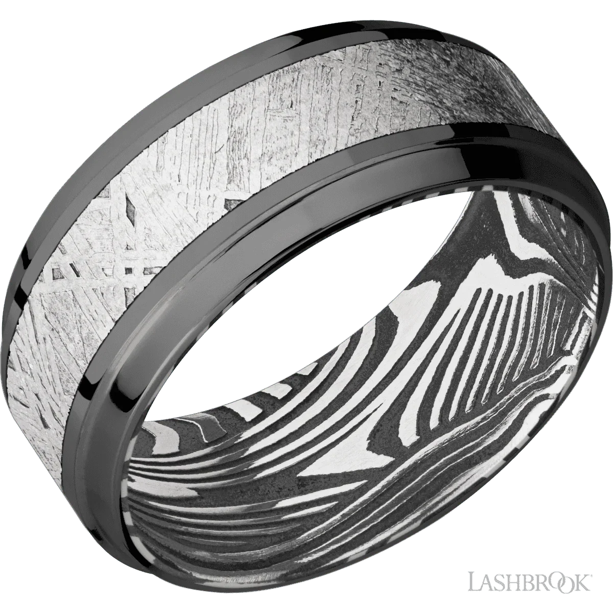 Zirconium with Polish , Polish Finish and Meteorite Inlay and Sunset - 9MM