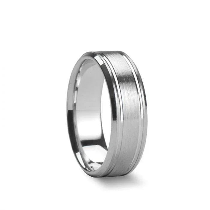 ZOPYROS Novell Beveled Brush Finished Silver Ring with Polished Grooves - 6mm - 8mm
