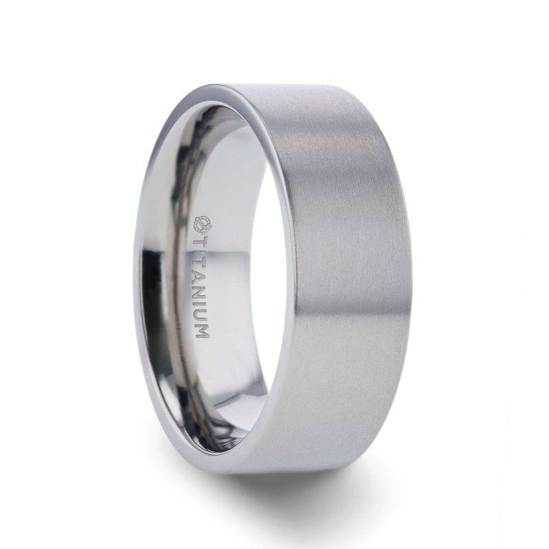 SOLAR Flat Profile Brushed Finish Men’s Titanium Wedding Band - 6mm and 8mm